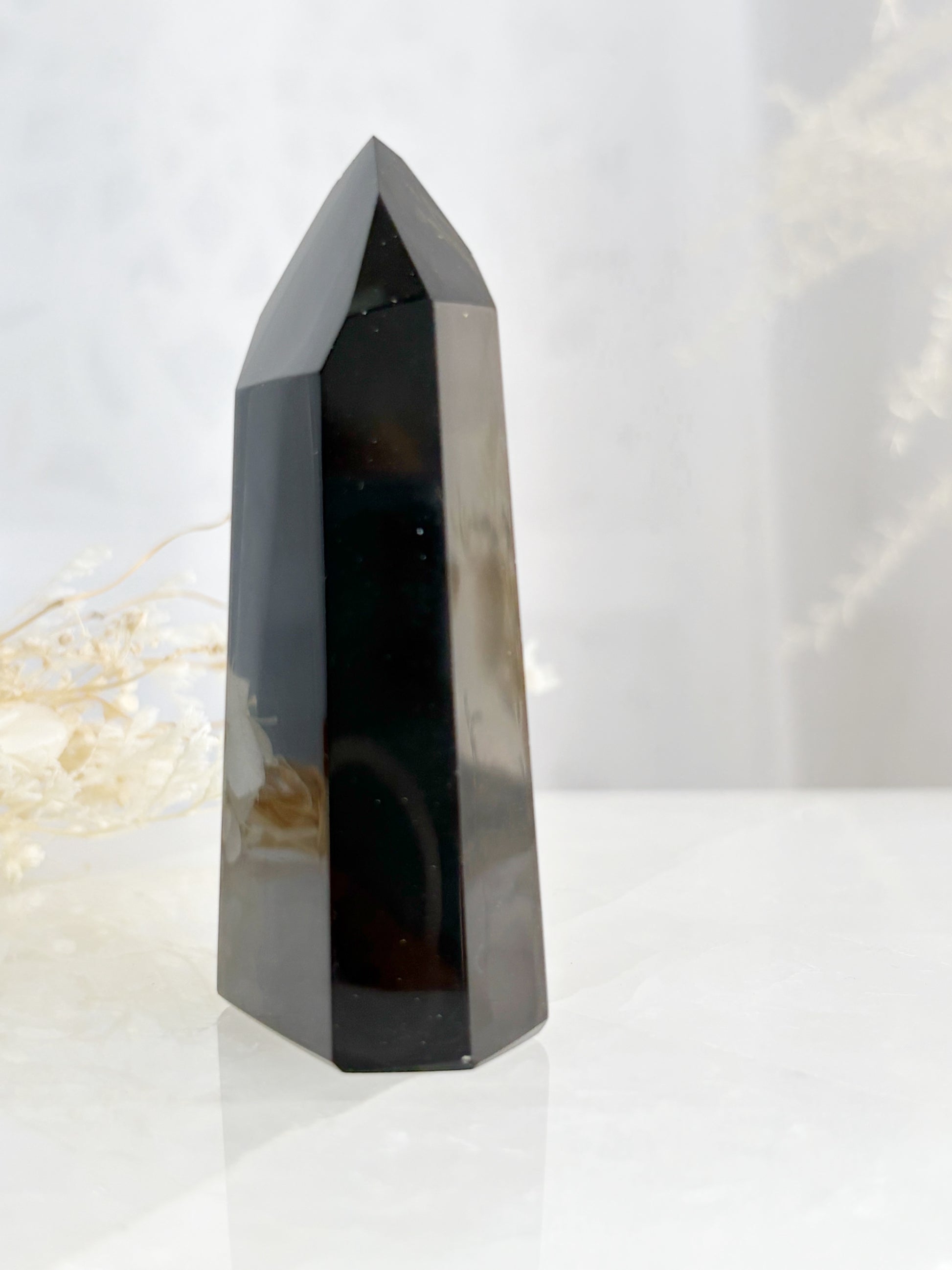 Black Obsidian is a stone of protection and grounding. It firmly anchors your root chakra to the Earth energies stabilising you, and places a protective shield around its bearer, deflecting negativity, psychic attacks, curses + EMR. Obsidian forces one to be truly honest with themselves, shedding light on one’s own subconscious negativity and bringing clarity around what needs healing and releasing. It is also considered highly beneficial in assisting in removing blocks + healing trauma in the emotional body and ancestral lines. Place Black Obsidian at your front door to repel negative energy from entering.