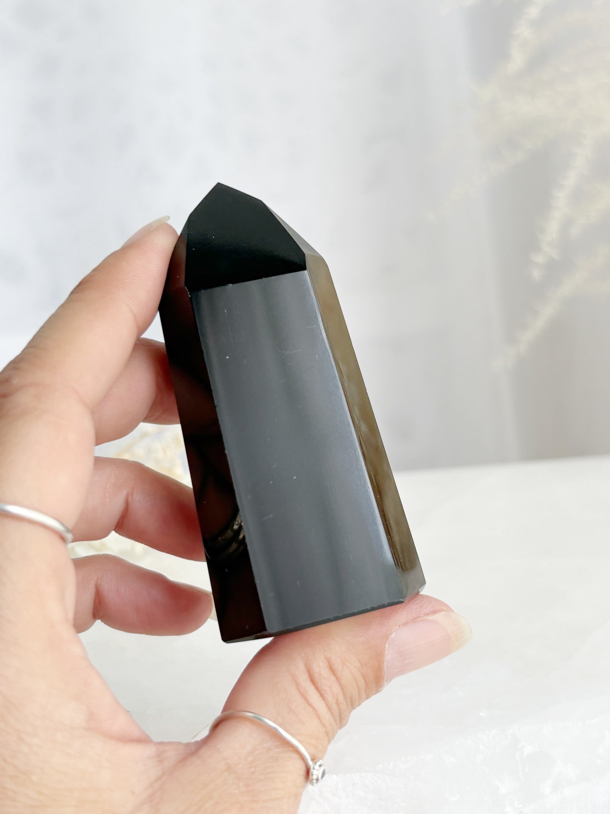 Black Obsidian is a stone of protection and grounding. It firmly anchors your root chakra to the Earth energies stabilising you, and places a protective shield around its bearer, deflecting negativity, psychic attacks, curses + EMR. Obsidian forces one to be truly honest with themselves, shedding light on one’s own subconscious negativity and bringing clarity around what needs healing and releasing. It is also considered highly beneficial in assisting in removing blocks + healing trauma in the emotional body and ancestral lines. Place Black Obsidian at your front door to repel negative energy from entering.