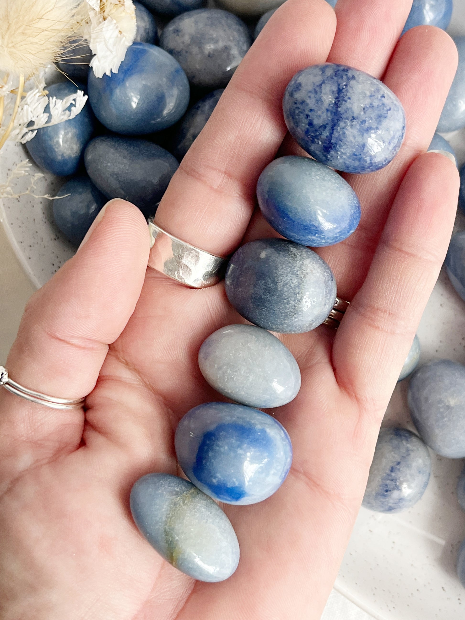 Included is one Blue Quartz tumble intuitively chosen by us. As stone is unique, each may vary in size, shape and colour.