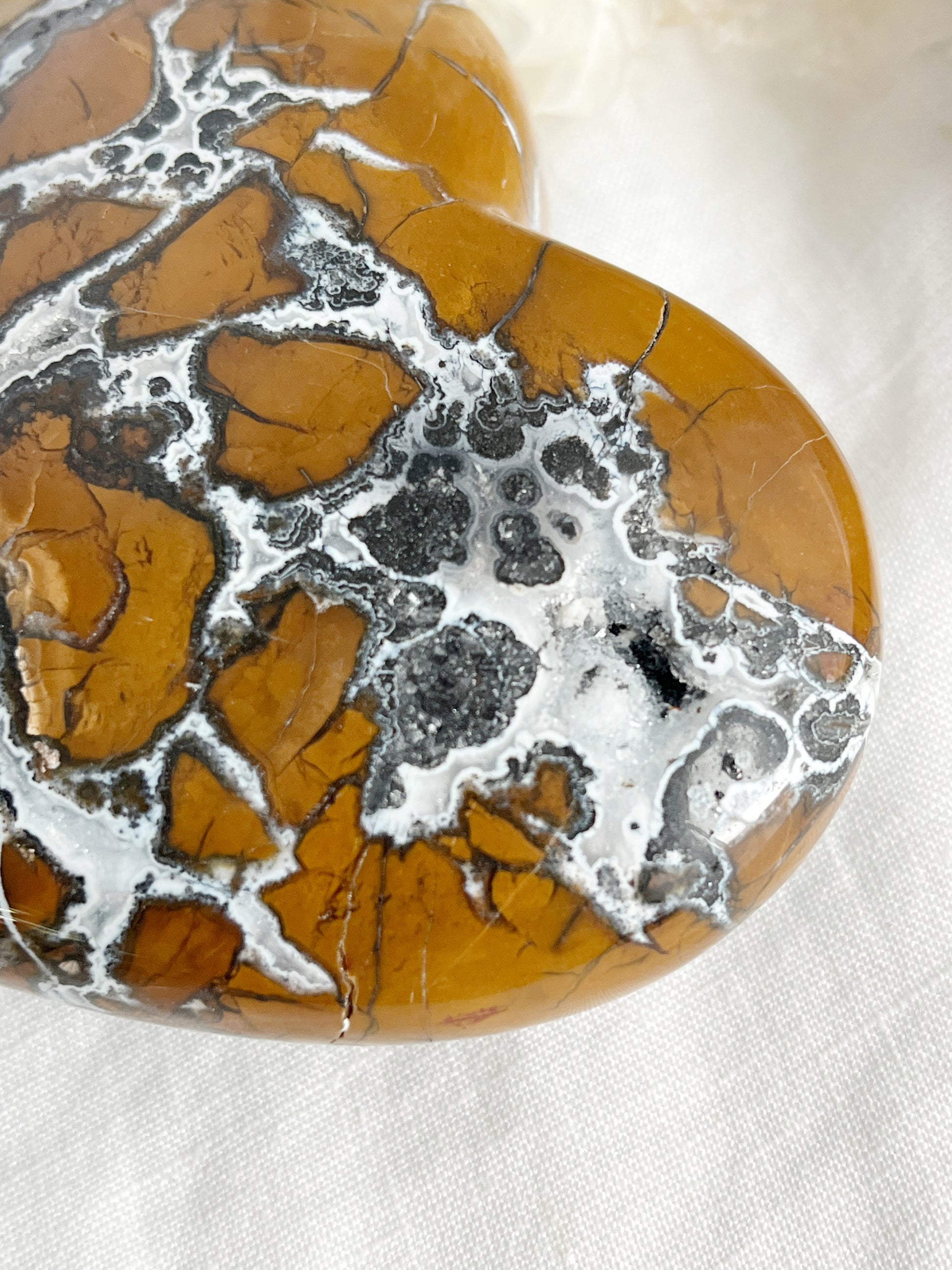 Brown Brecciated Jasper is prized for its earthy grounding + emotional balance. It assists to stabilize energy, helping one to remain centred, calm + grounded. With a deeply nurturing energy, Brown Jasper helps relieve feelings of worry helping one to regain feelings of safety + stability while encouraging that practice of patience, presence + gratitude.