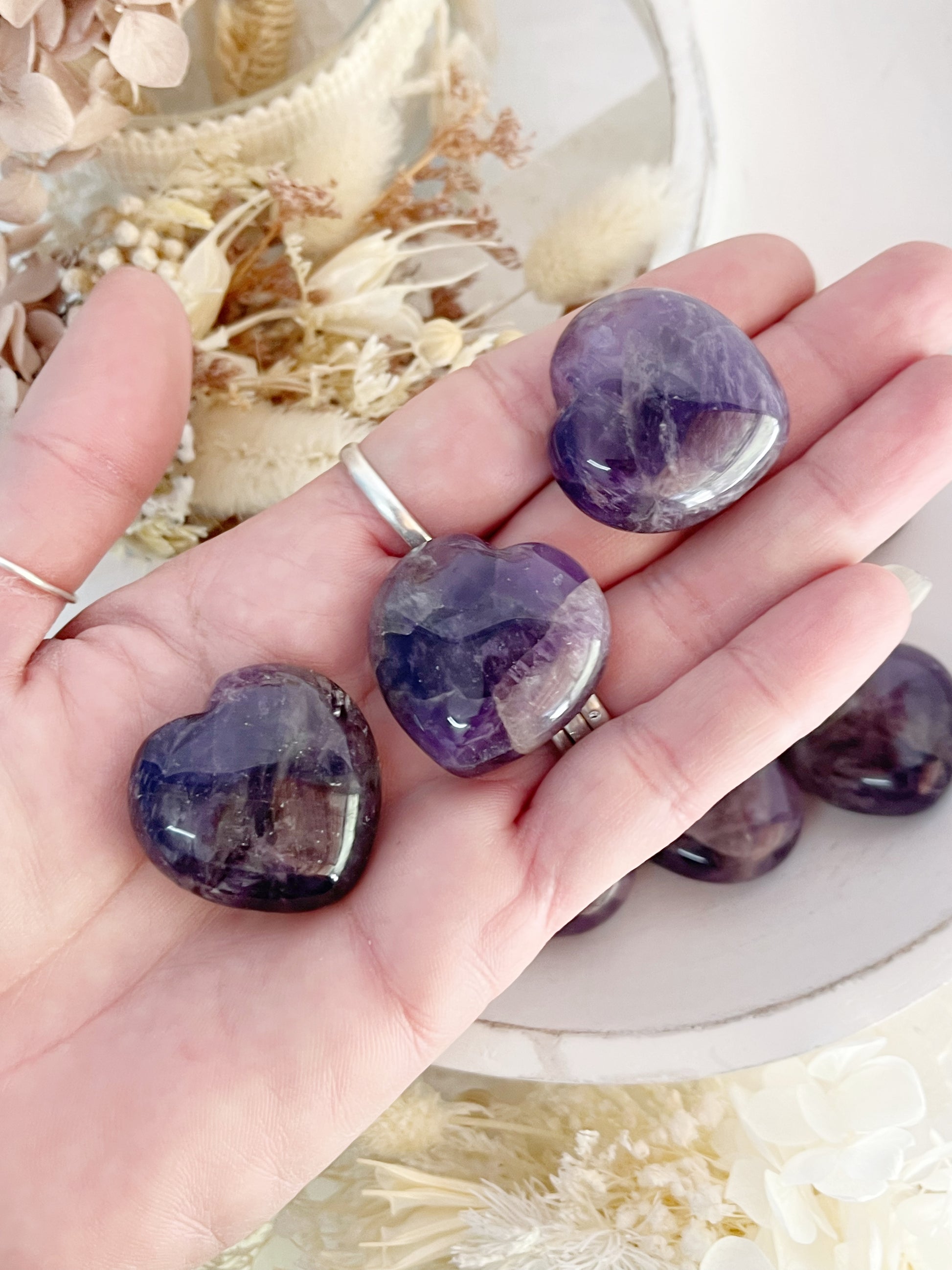 Included is one Dream Amethyst heart intuitively chosen by us