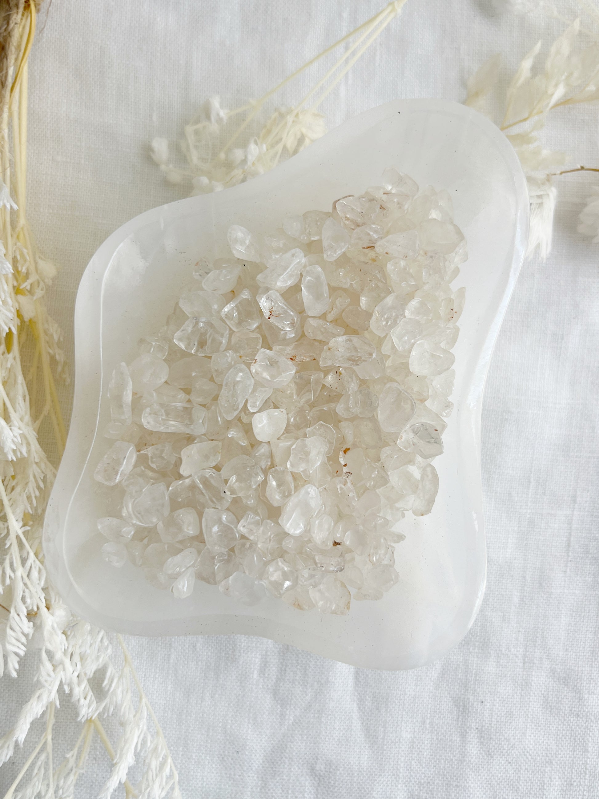 Clear Quartz is a high vibrational stone that will amplify the energy around it including that of other crystals. It radiates positive energy into the surrounding area lifting it to a higher, lighter vibration. Clear Quartz assists in opening up the mind while clearing negativity and blockages, bringing clarity on all levels. It supports you in expanding your auric field and consciousness and is a valuable tool to enhance + develop psychic or intuitive abilities. It opens up clear communication with your guides + higher realms. It is a highly + easily programmable stone to assist with any intention. Guide to program Quartz HERE.