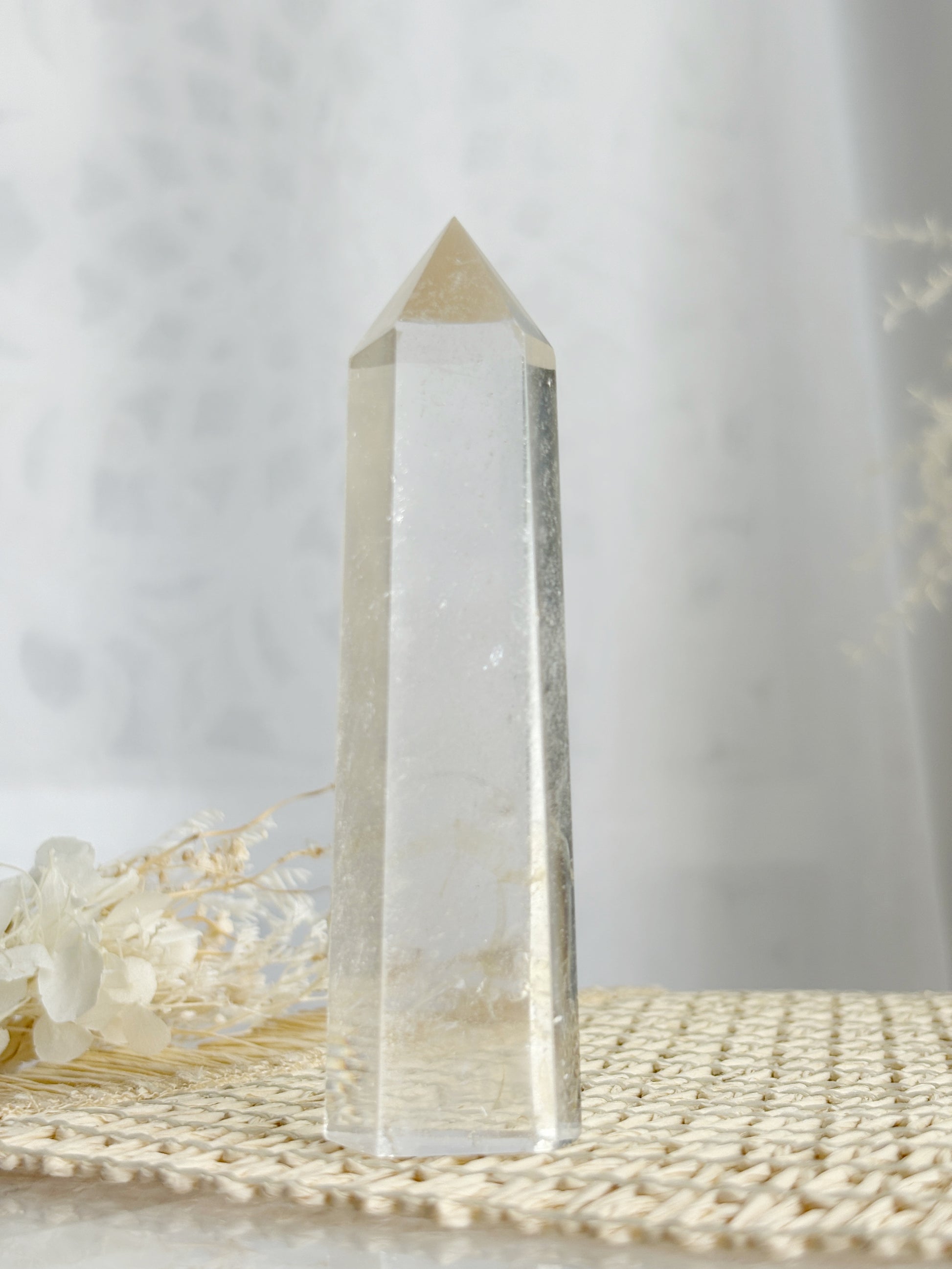 Clear Quartz is a high vibrational stone that amplifies the energy around it including that of other crystals. It radiates positive energy into the surrounding area lifting it to a higher, lighter vibration. Clear Quartz assists in opening up the mind while clearing negativity and blockages, bringing clarity on all levels. It supports you in expanding your auric field and consciousness and is a valuable tool to enhance + develop psychic or intuitive abilities + strengthen communication with your guides + higher realms. Clear Quartz is a highly + easily programmable stone to assist with any intention.