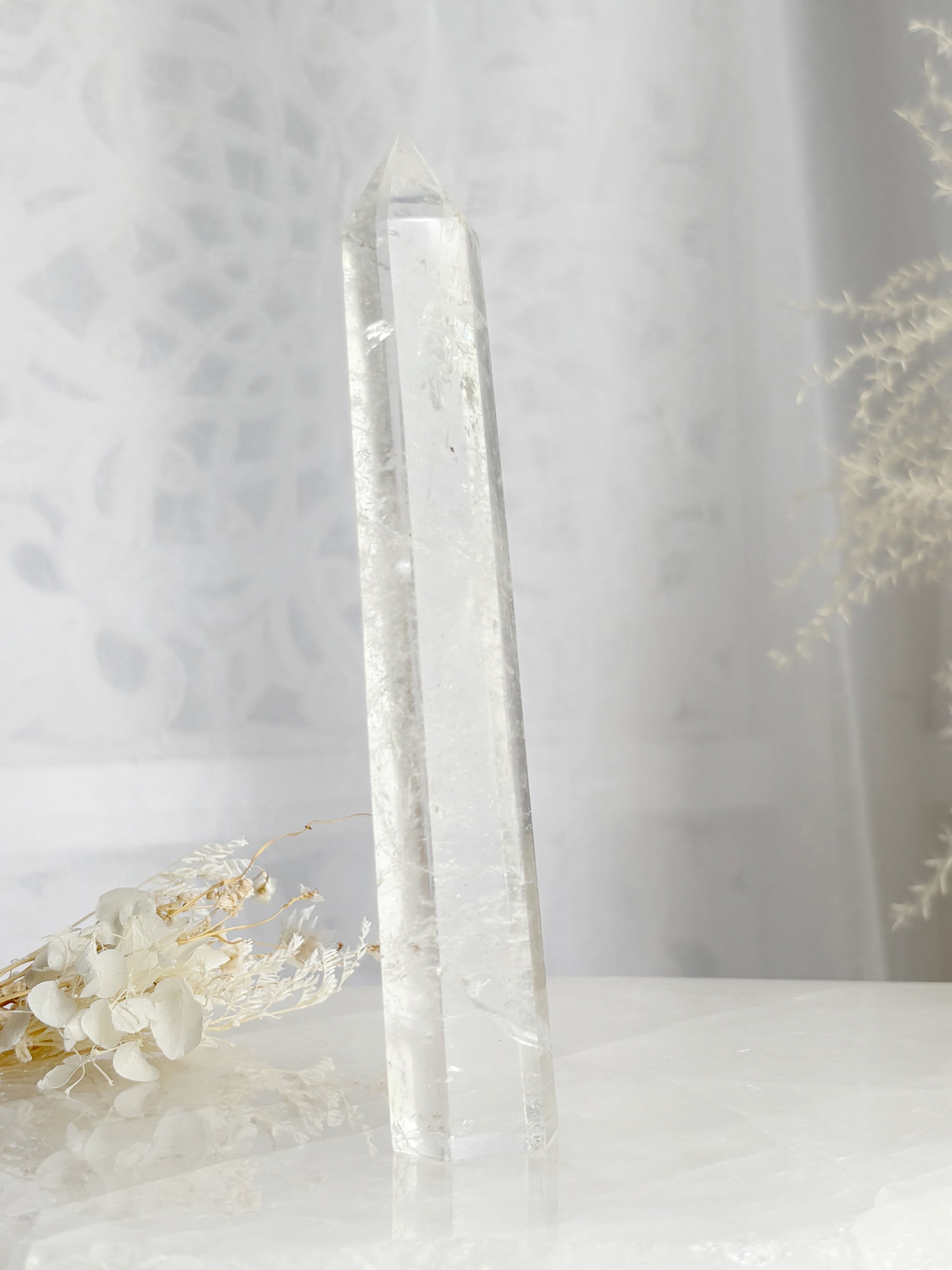 Clear Quartz is a high vibrational stone that amplifies the energy around it including that of other crystals. It radiates positive energy into the surrounding area lifting it to a higher, lighter vibration. Clear Quartz assists in opening up the mind while clearing negativity and blockages, bringing clarity on all levels. It supports you in expanding your auric field and consciousness and is a valuable tool to enhance + develop psychic or intuitive abilities + strengthen communication with your guides + higher realms. Clear Quartz is a highly + easily programmable stone to assist with any intention.