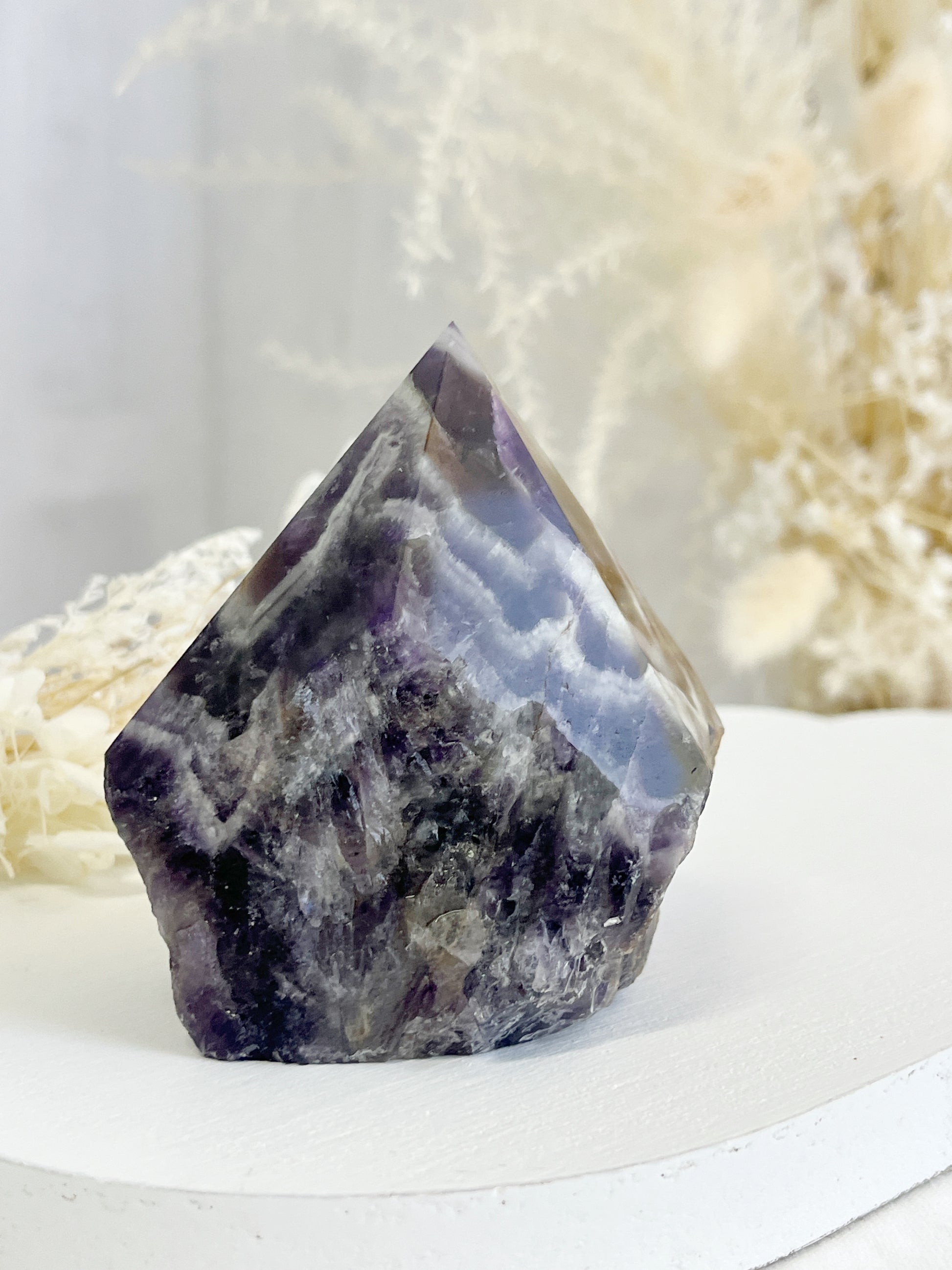 Included is one Dream Amethyst top polished rough base point, you will receive the exact crystal pictured.