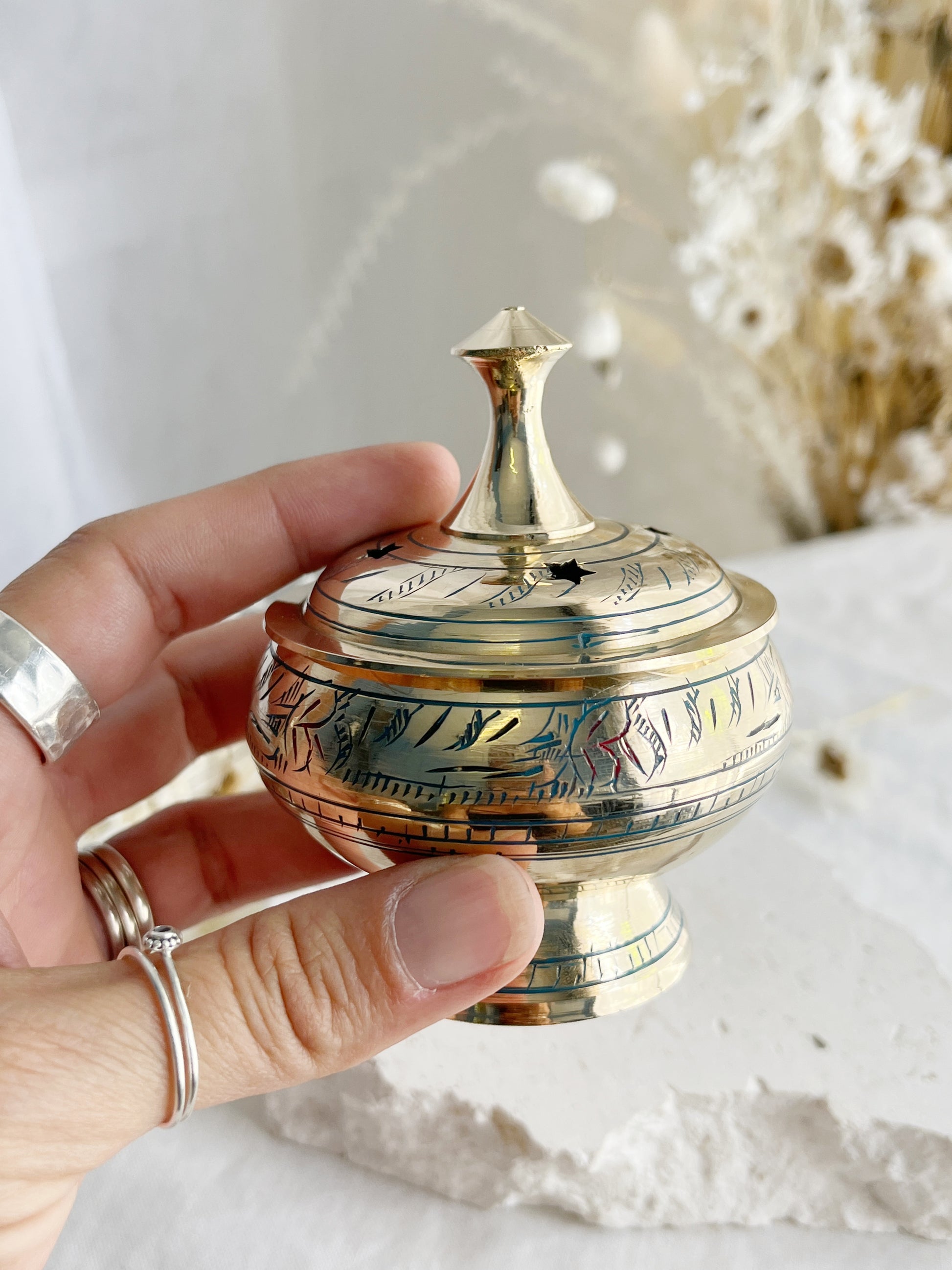 Brass burner. For use with Incense cones | charcoal tablets | resin | loose incense. Approx 8.5x6.5cm