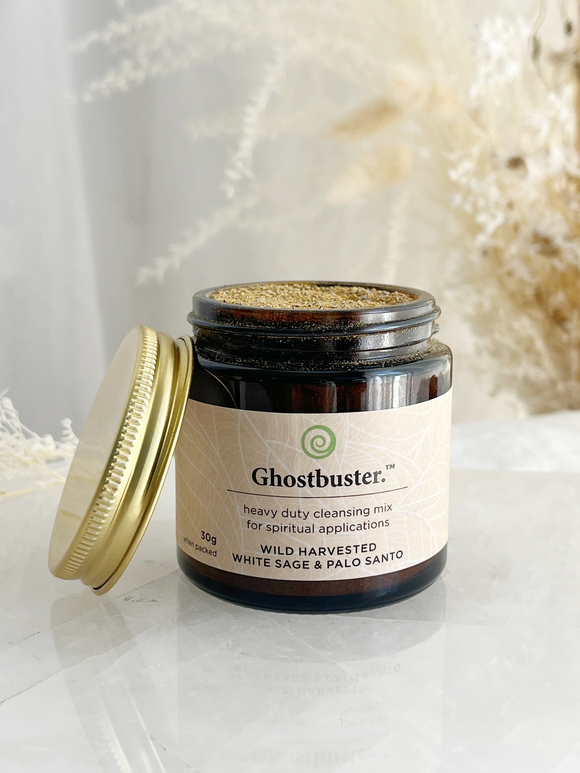 Ghostbuster ™ is a heavy duty cleansing blend created from concentrated amounts of pure White Sage powder and milled, wild harvested Palo Santo. It is the perfect blend for purification rituals. We recommend that it is used to assist in the processes of removing negative and unwanted energies, to let go of anything that no longer serves and in turn to attract positive energies. For best results burn on charcoal in an abalone shell or charcoal burner. Once the sacred smoke is created gently disperse the smoke around the room, your body and any items that require cleansing. Always perform cleansing rituals with reverence, a positive intention and within a peaceful, safe space.