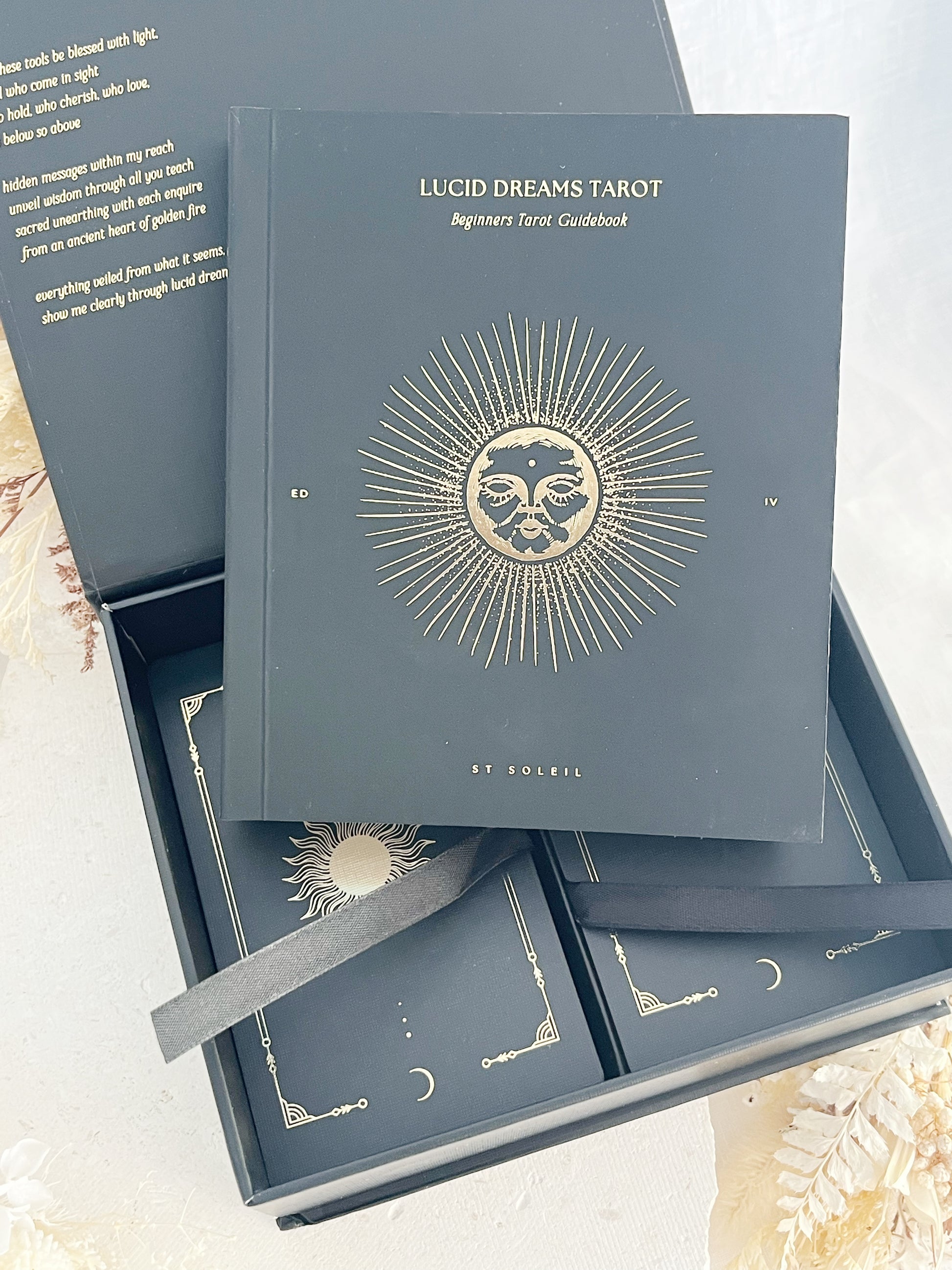 Included is one "Lucid Dreams beginners tarot deck + guide book" Black Eclipse edition IV