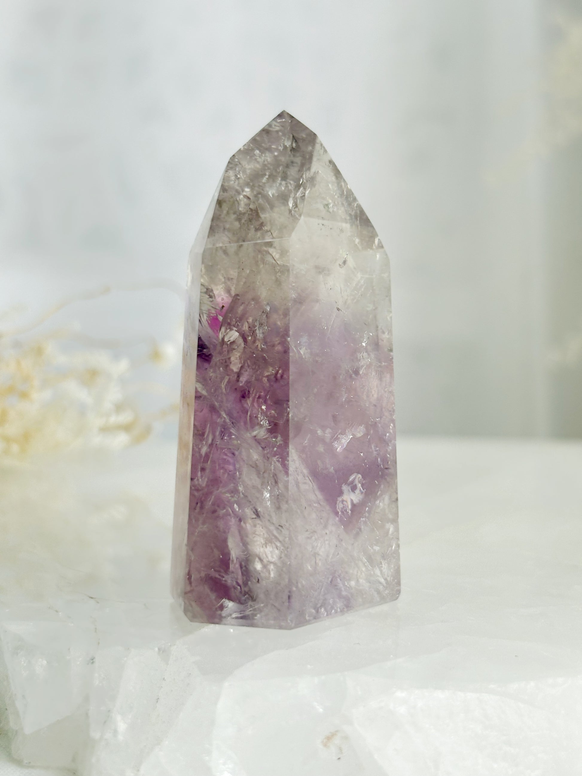 Phantom Amethyst in addition to holding the properties of Amethyst, also assists in accelerating spiritual evolution, helping you to identify, and release all that is not for your highest purpose in this lifetime. It is a powerful tool for tapping into the wisdom of the Akashic records and encourages deep healing, personal growth + transformation.