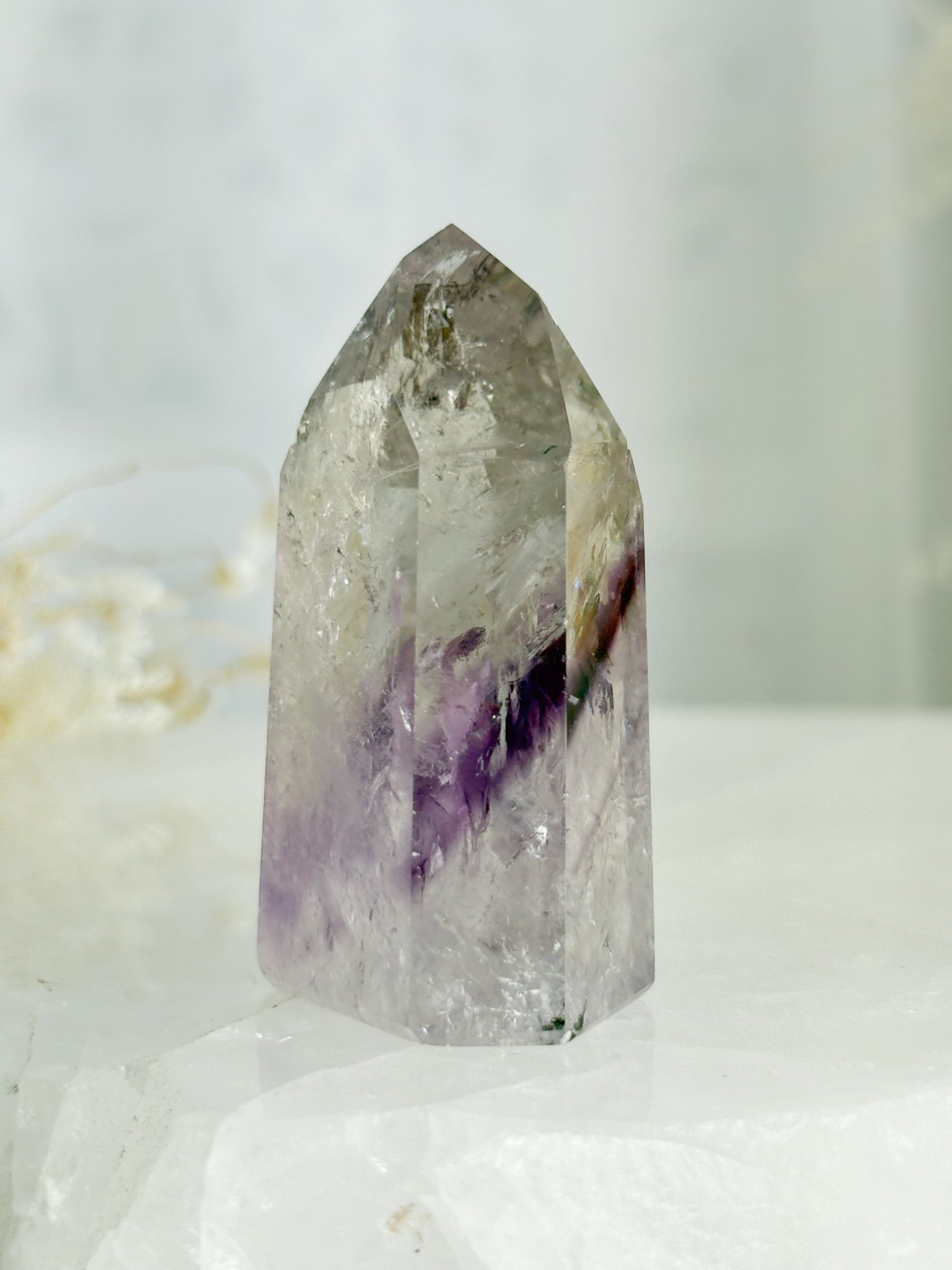 Phantom Amethyst in addition to holding the properties of Amethyst, also assists in accelerating spiritual evolution, helping you to identify, and release all that is not for your highest purpose in this lifetime. It is a powerful tool for tapping into the wisdom of the Akashic records and encourages deep healing, personal growth + transformation.