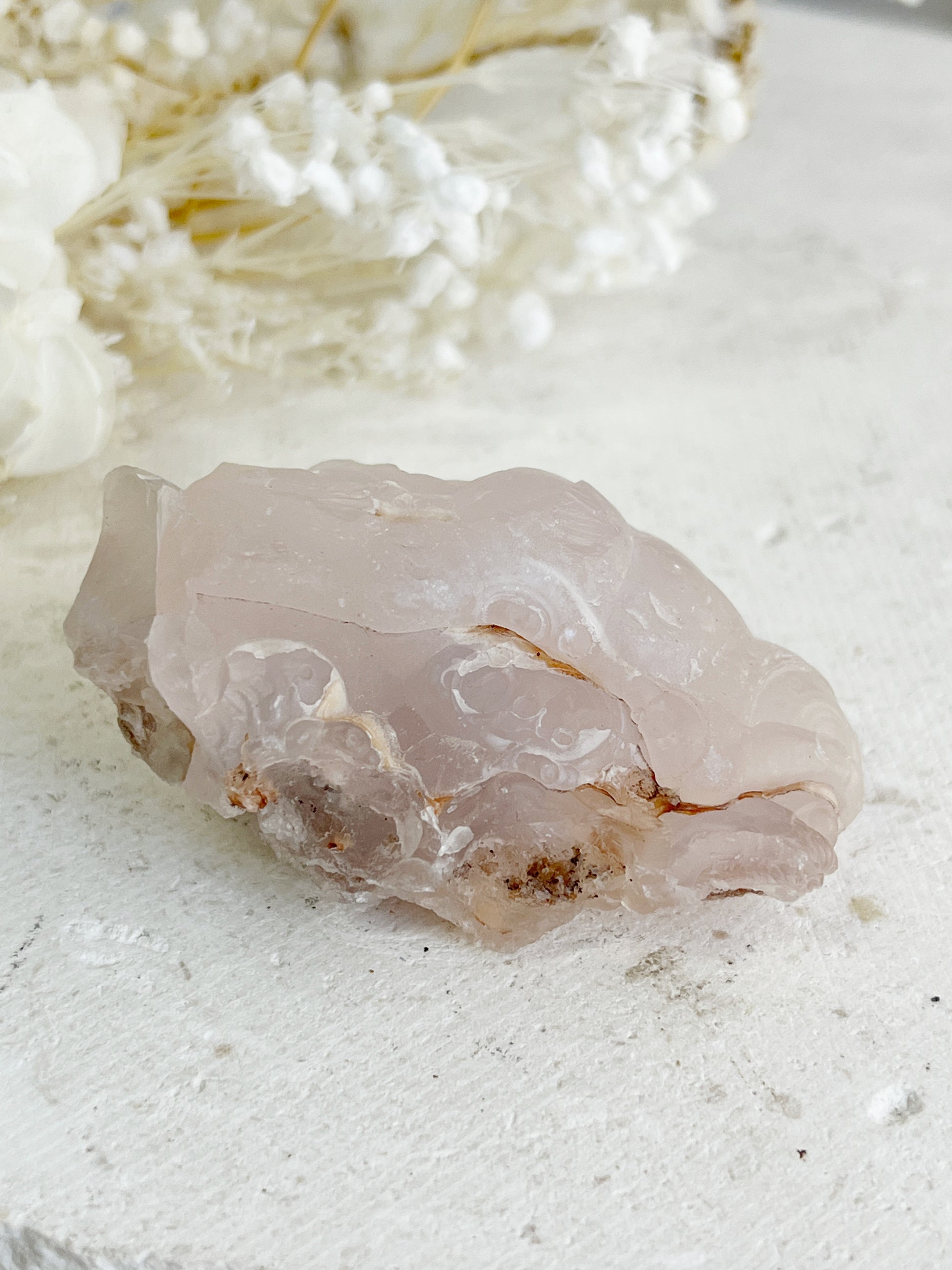 Pink Chalcedony has a gentle nurturing vibration that harmonises the body, mind and spirit. It promotes love, generosity, kindness + compassion, not just for others but also for yourself. Opening and expanding the Heart Chakra, Pink Chalcedony offers strength + support to face, heal + release past emotional hurt, facilitating forgiveness and encouraging you to begin to trust again with an open heart. Bringing a burst of childlike wonder, it infuses your Aura with a positive + joyful energy. When used in meditation, it invites deep inner reflection, peace + self-acceptance.