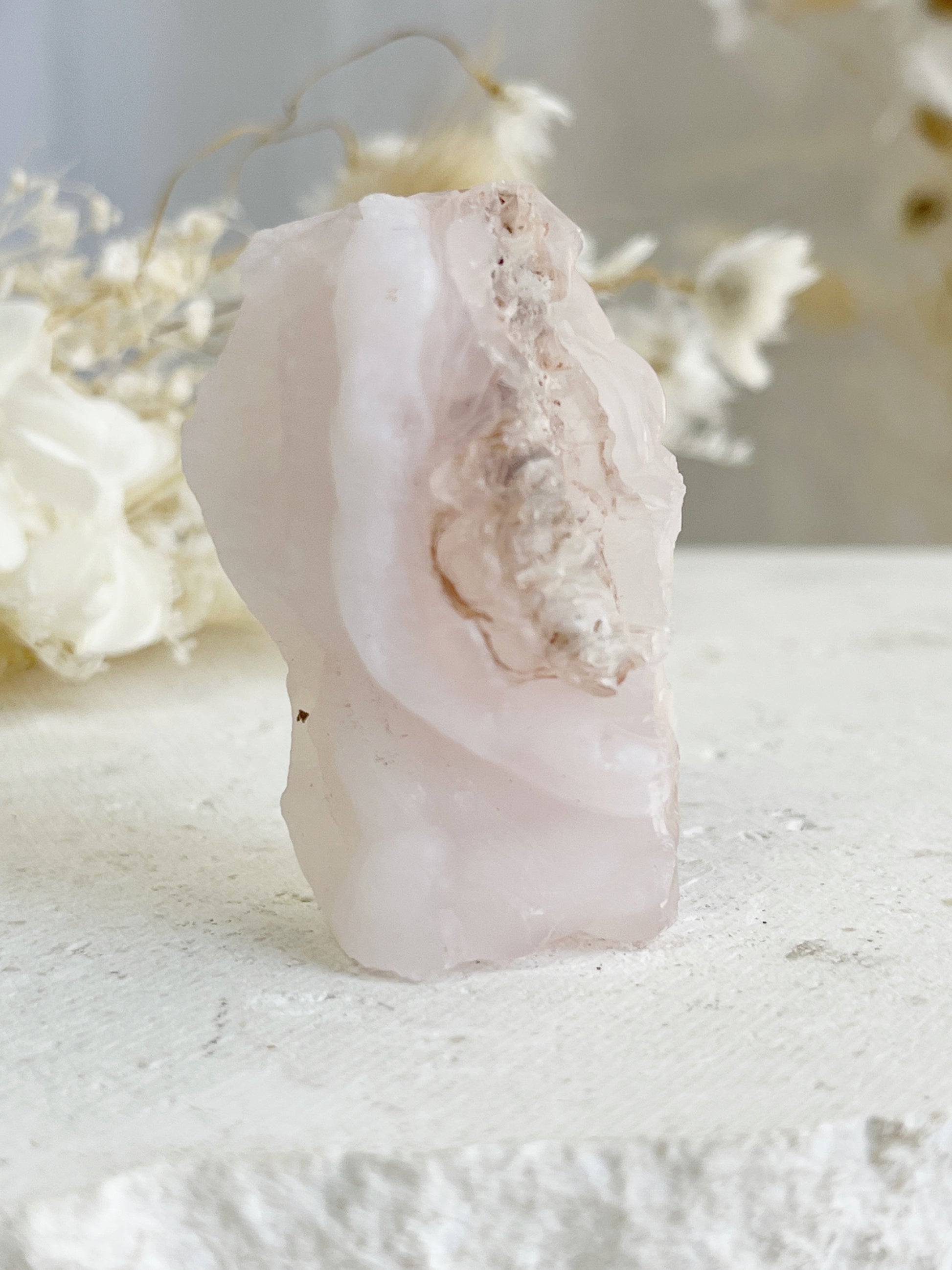 Pink Chalcedony has a gentle nurturing vibration that harmonises the body, mind and spirit. It promotes love, generosity, kindness + compassion, not just for others but also for yourself. Opening and expanding the Heart Chakra, Pink Chalcedony offers strength + support to face, heal + release past emotional hurt, facilitating forgiveness and encouraging you to begin to trust again with an open heart. Bringing a burst of childlike wonder, it infuses your Aura with a positive + joyful energy. When used in meditation, it invites deep inner reflection, peace + self-acceptance.