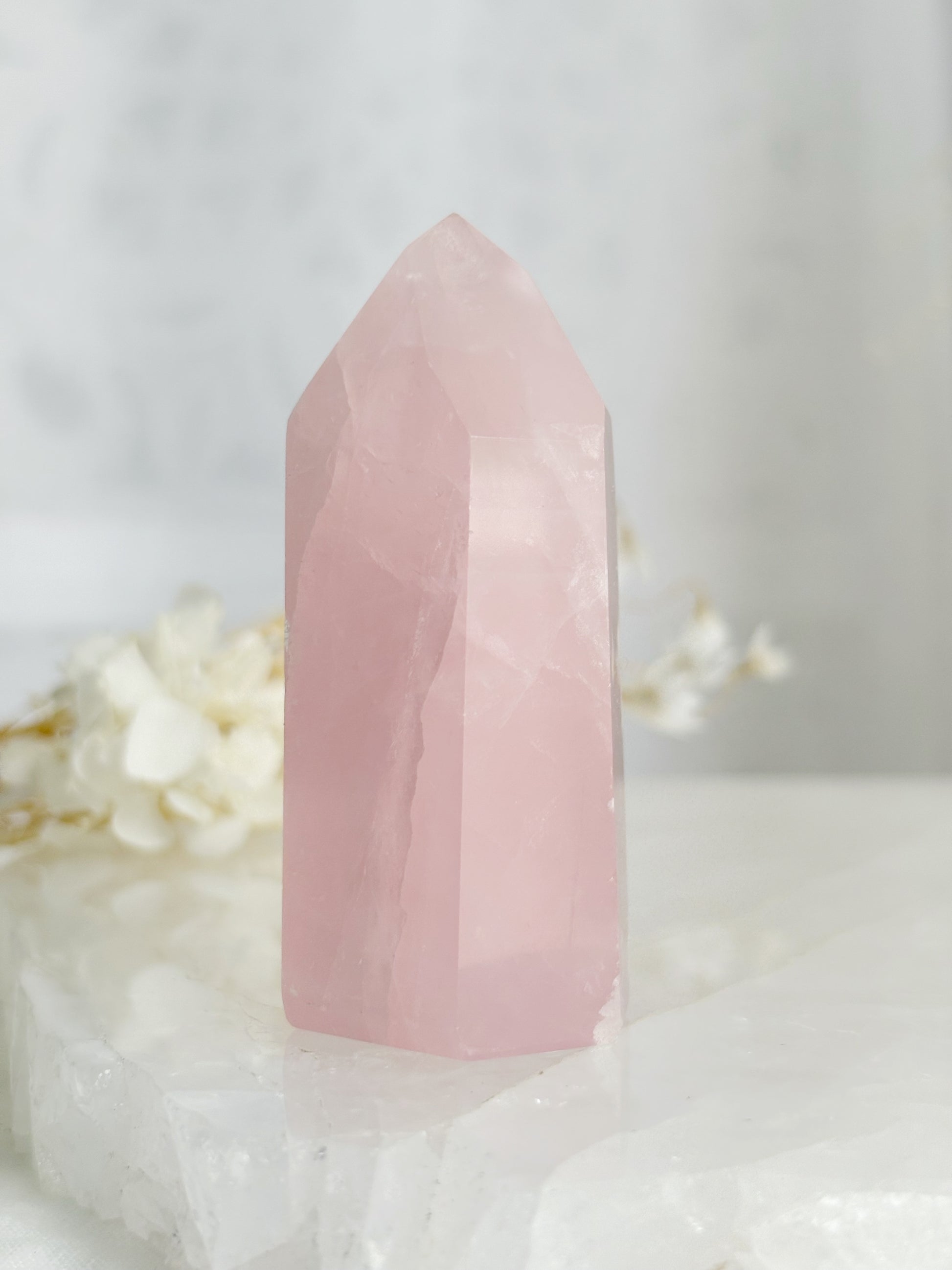 Rose Quartz opens the heart to unconditional love, inspiring compassion and forgiveness. It awakens and fosters deep self-love, assisting to raise one's self-esteem & inner courage. By clearing & rejuvenating the heart chakra, it assists with deep emotional healing and helps one to understand their emotions. It dissolves past fears, encouraging one to give and recieve love freely. Rose Quartz emanates love and positive energy to its surrounds and bearer.