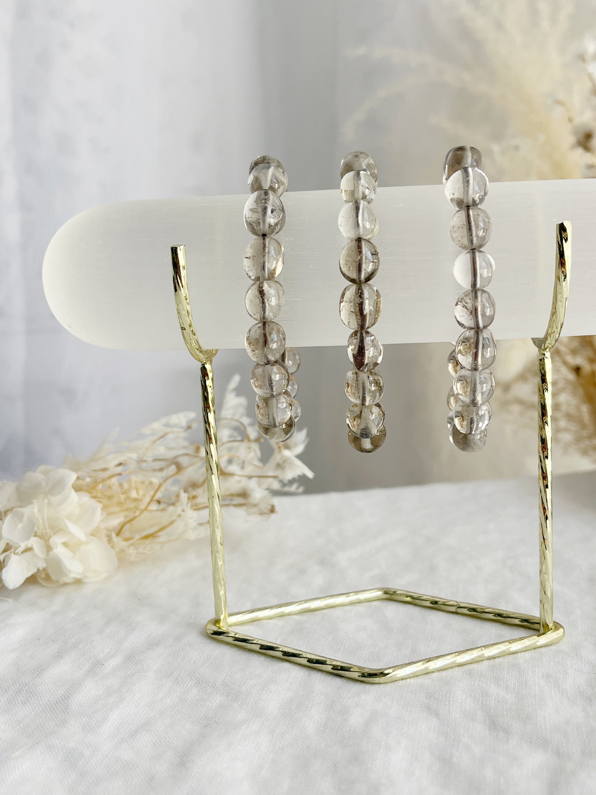 Included is one Smokey Quartz stretch pebble bead bracelet intuitively chosen by us. As stone is naturally unique, each may vary in size, hape + colour.
