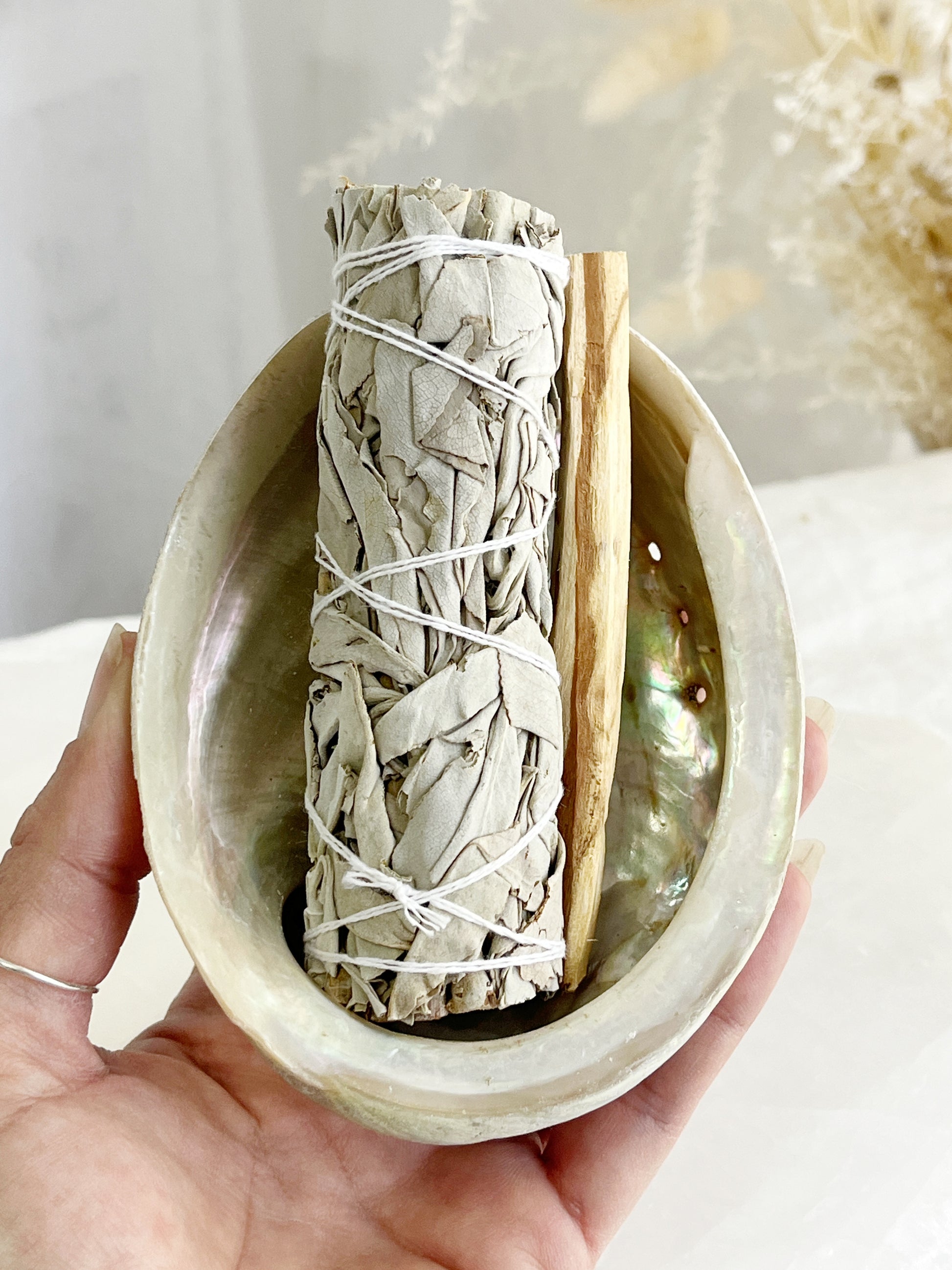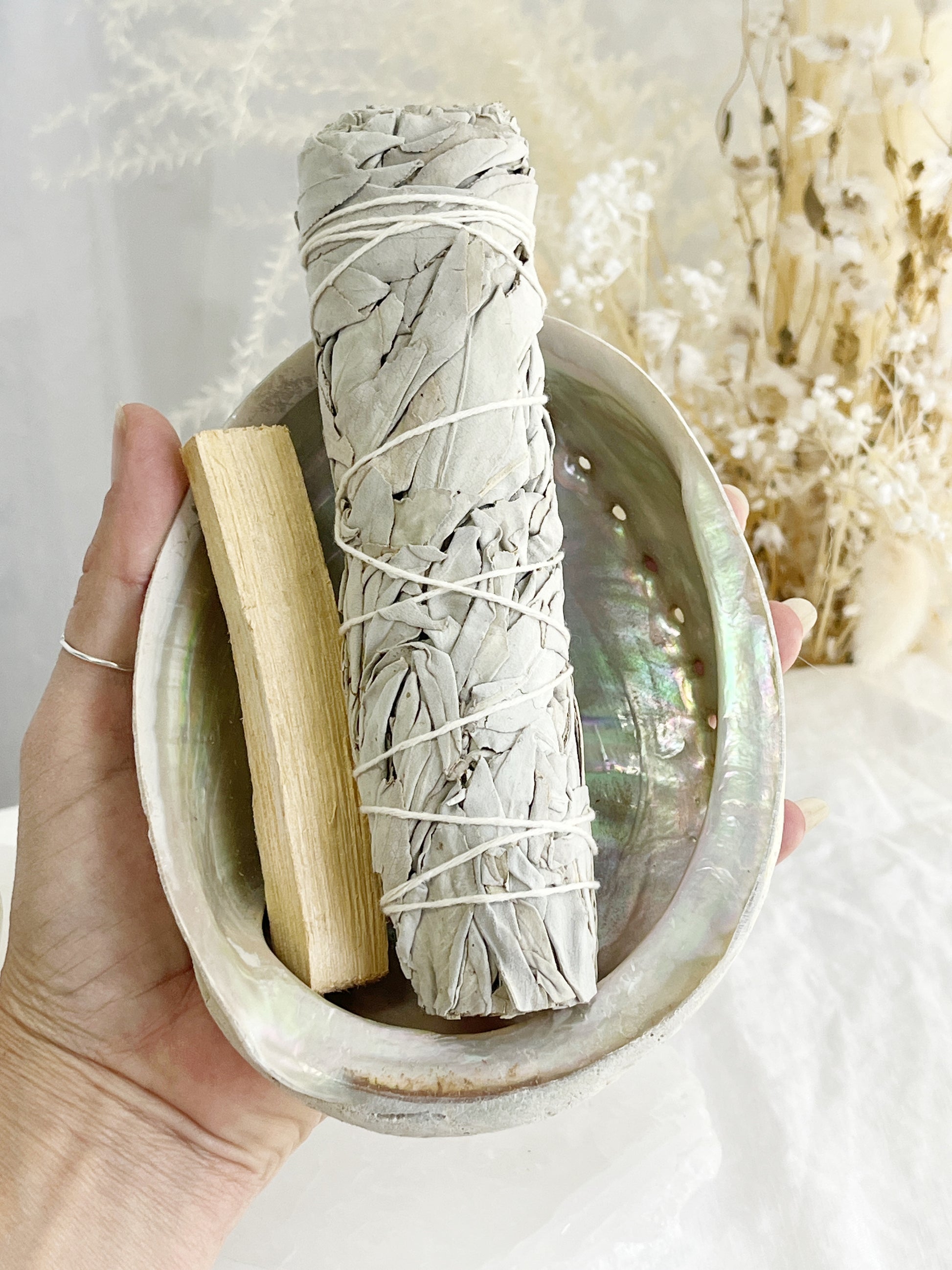 Smudge and cleanse yourself, crystals, and surrounds with this beautiful kit.