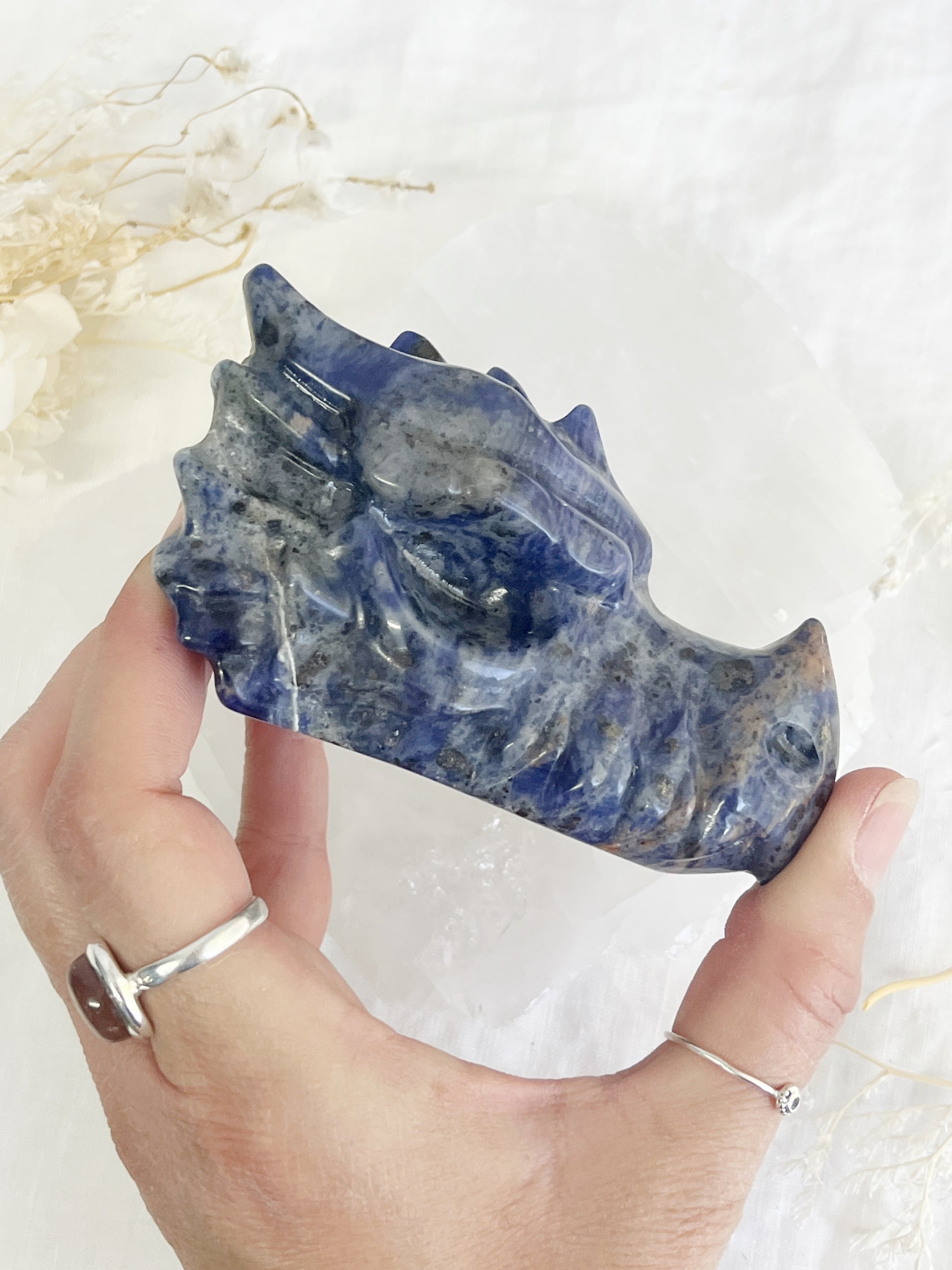 Included is one Sodalite Dragon head carving, you will receive the exact crystal pictured only.