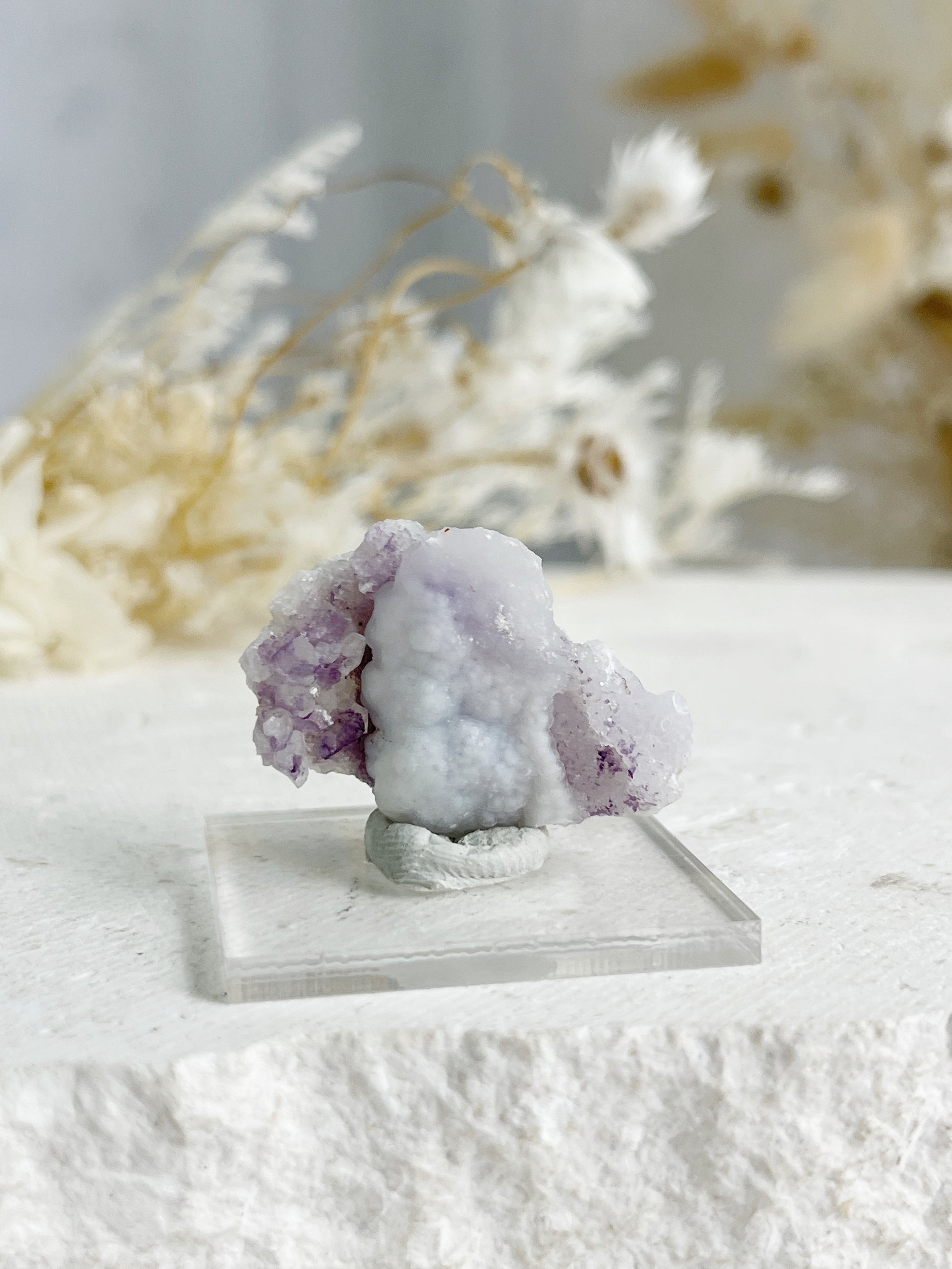 Spirit Flower geodes are a combination of chalcedony, fluorite + quartz. These magical little formations assist to bring clarity, focus + harmony. It supports in expanding your auric field + consciousness and is a valuable tool to enhance + develop psychic or intuitive abilities, opening clear communication with your guides + higher realms.