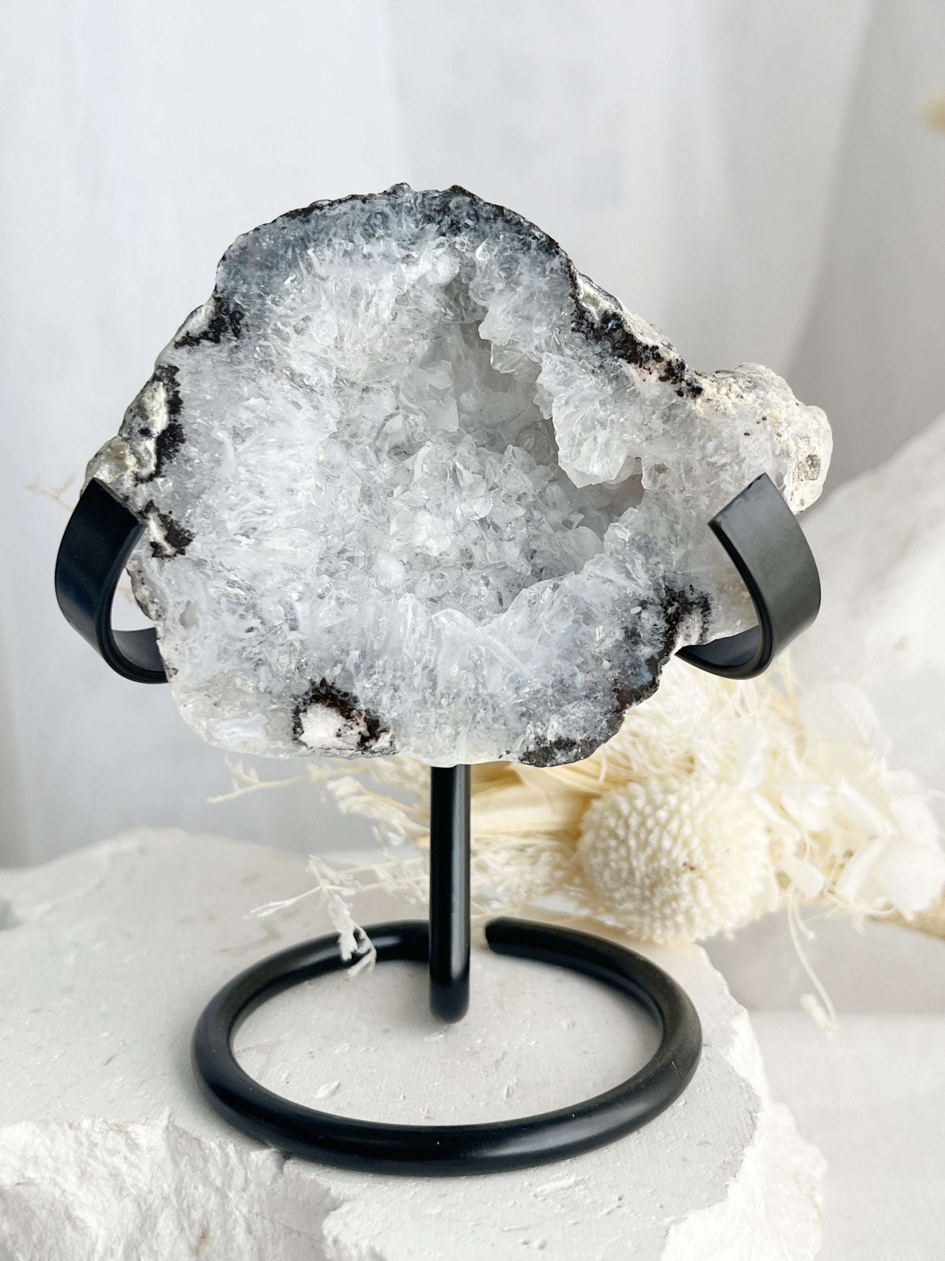 Trancas Geodes are a natural combination of Agate, Quartz, Calcite + Chalcedony ( not all geodes will contain all minerals). Geodes are a high vibrational stone of rebirth, grounding, protection + transcendence, helping you to overcome blocks while dissolving unwanted energy cords. Imbuing mental clarity, intuition + confidence, they motivate you to step out of your comfort zone and take the necessary steps to align with your higher purpose. Trancas Geodes have a calming vibration, soothing your emotions and bringing harmony.