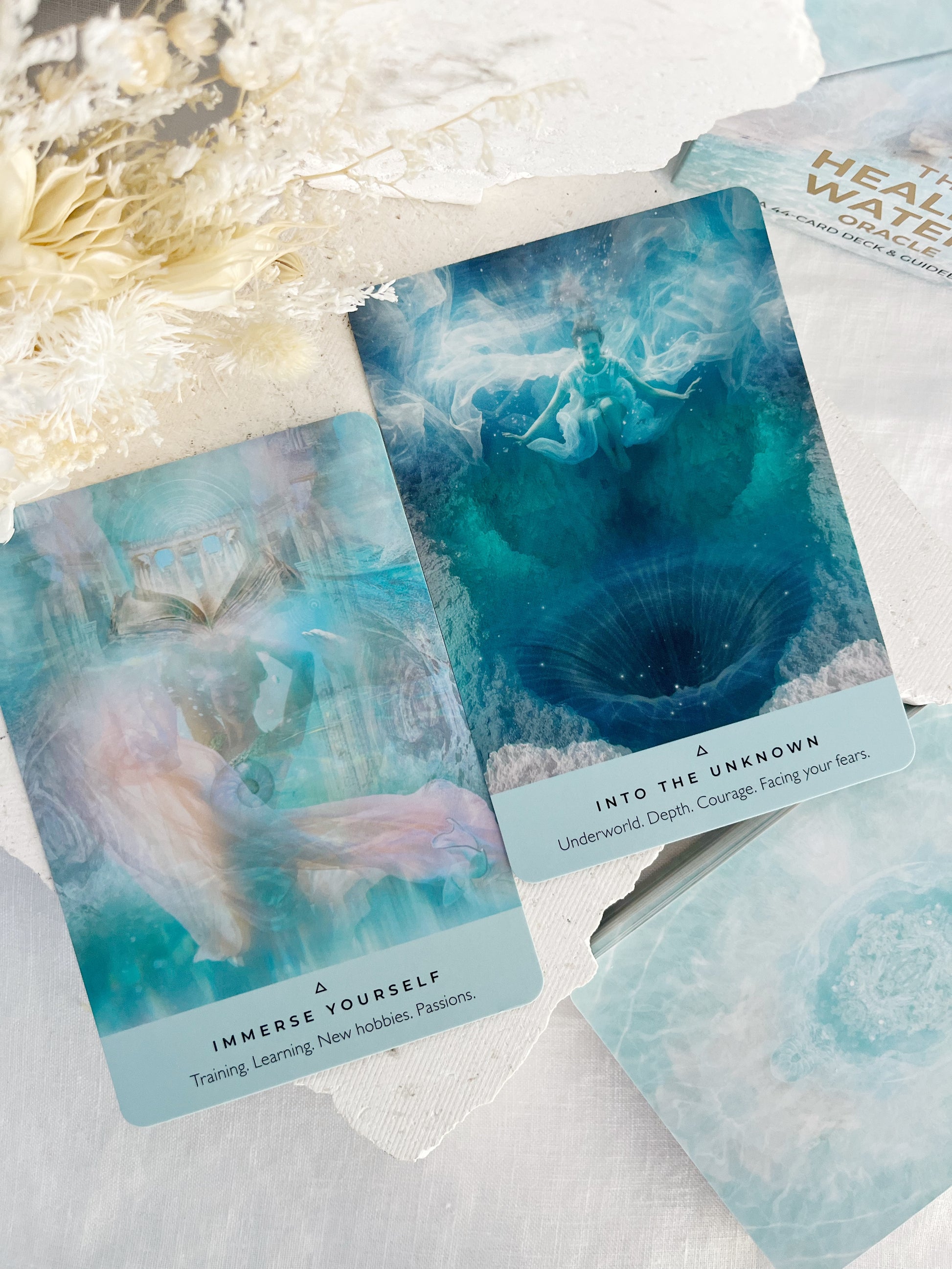 Included is one The Healing Waters Oracle Deck by Rebecca Campbell