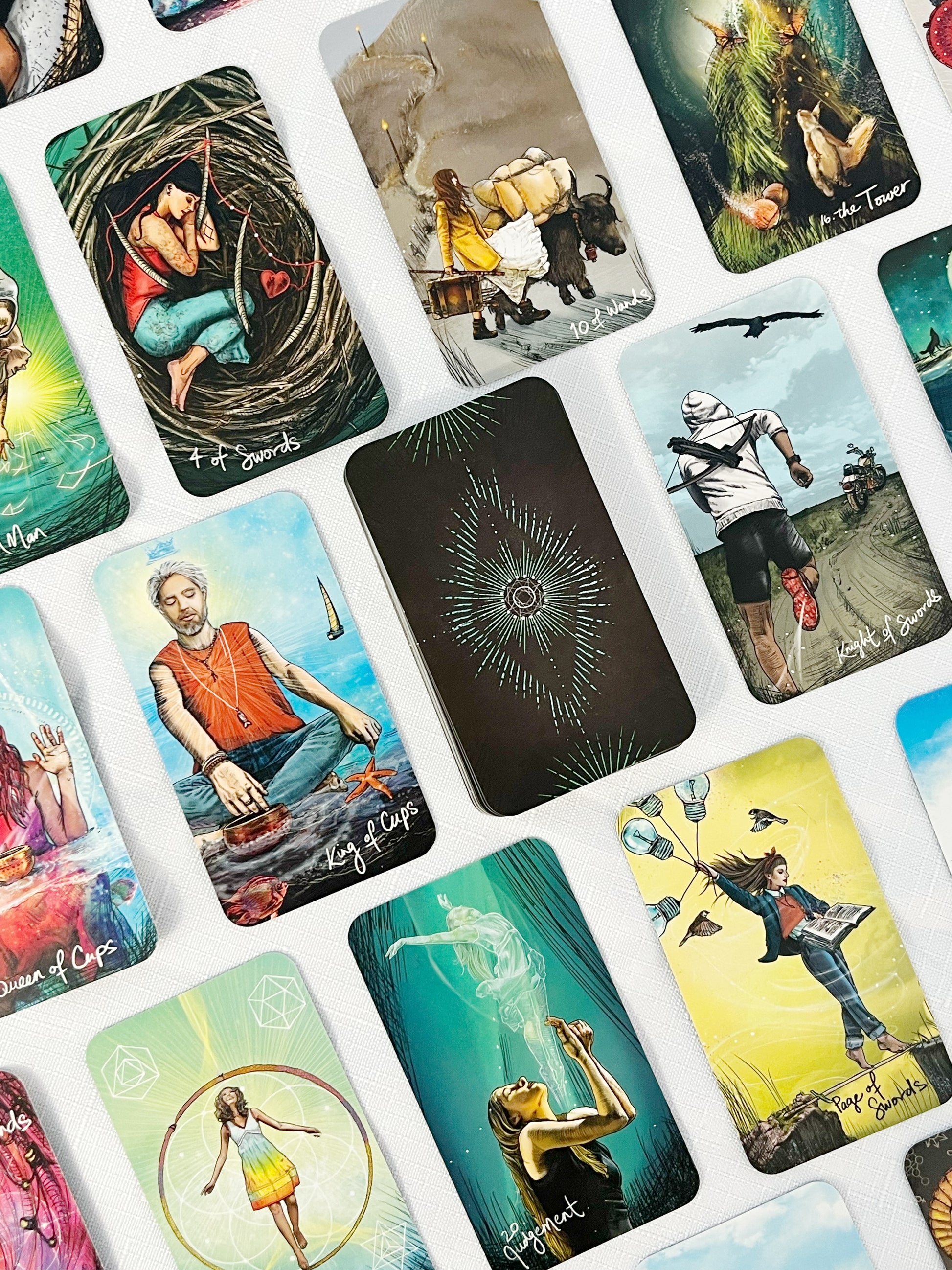 The archetypes, both traditional and reimagined, and symbols depicted on each of the 78 cards tell stories, ask questions, and provide answers. This deck is an ideal companion for the modern mystic to keep beside them as they seek places in themselves and in their life that are most in need of illumination.