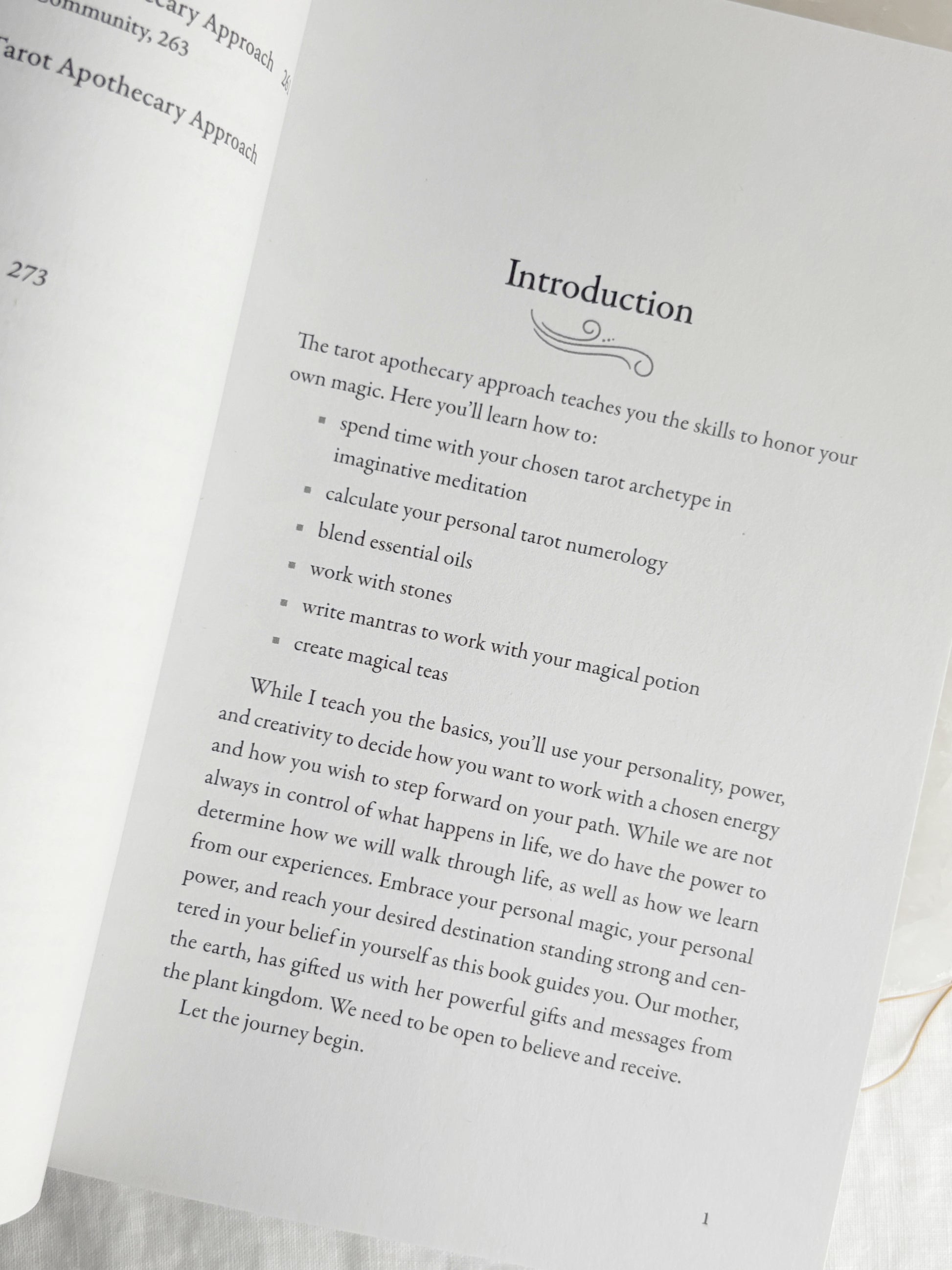 Included is one paperback "The Tarot Apothecary" book by Ailynne E. Halvorson