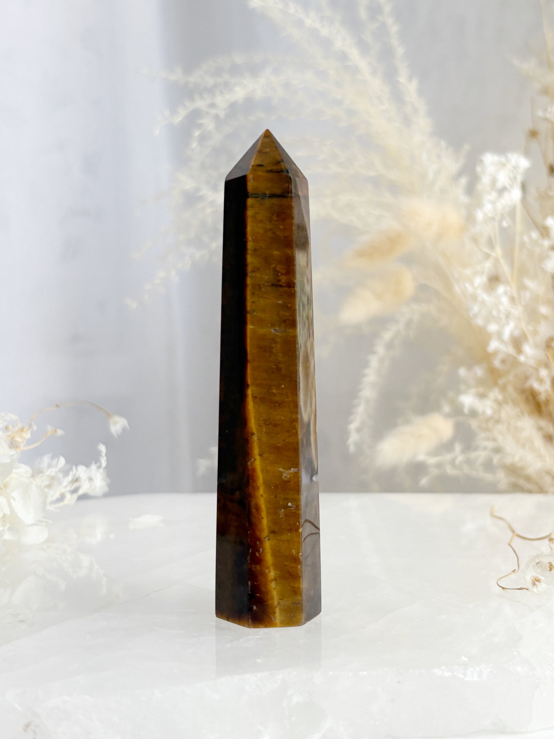 Tigers eye increases your personal power and will power, reminding you of your own inner strength + transforming negative self thoughts into motivation, courage and self confidence. It assists to keep your mind sharp and focused, bringing mental clarity and a shift to your mindset creating a more positive outlook. Tigers eye is also a grounding and protective stone repelling negativity, and helping you to feel centred + calm. It is said to also be a lucky talisman attracting good luck and prosperity.