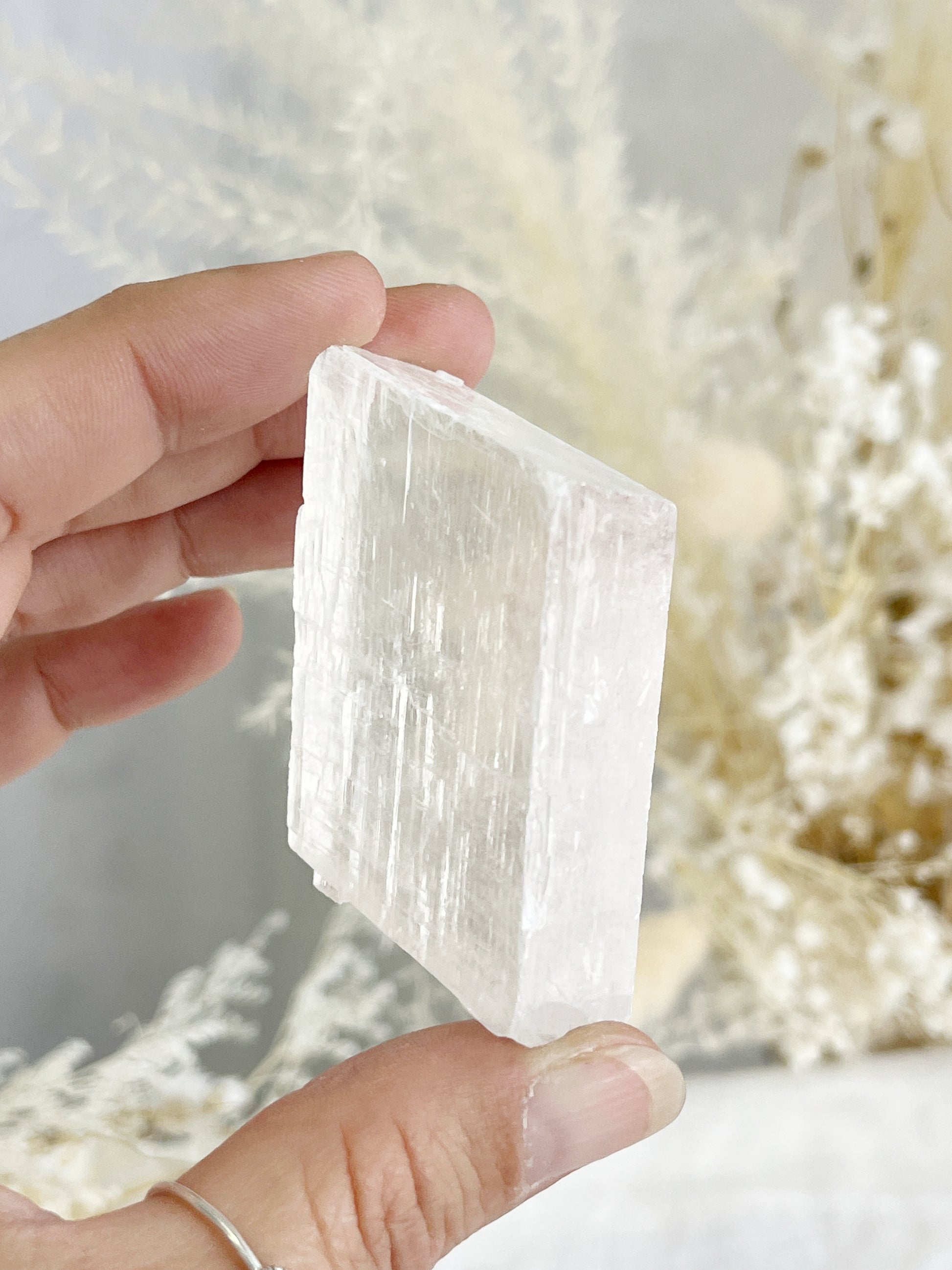 White Calcite cleanses stagnant energy + dispels negative energy, while balancing + cleansing the chakras and Aura. Clearing blockages and bringing inner clarity and vision, It accelerates spiritual growth + development of intuition.