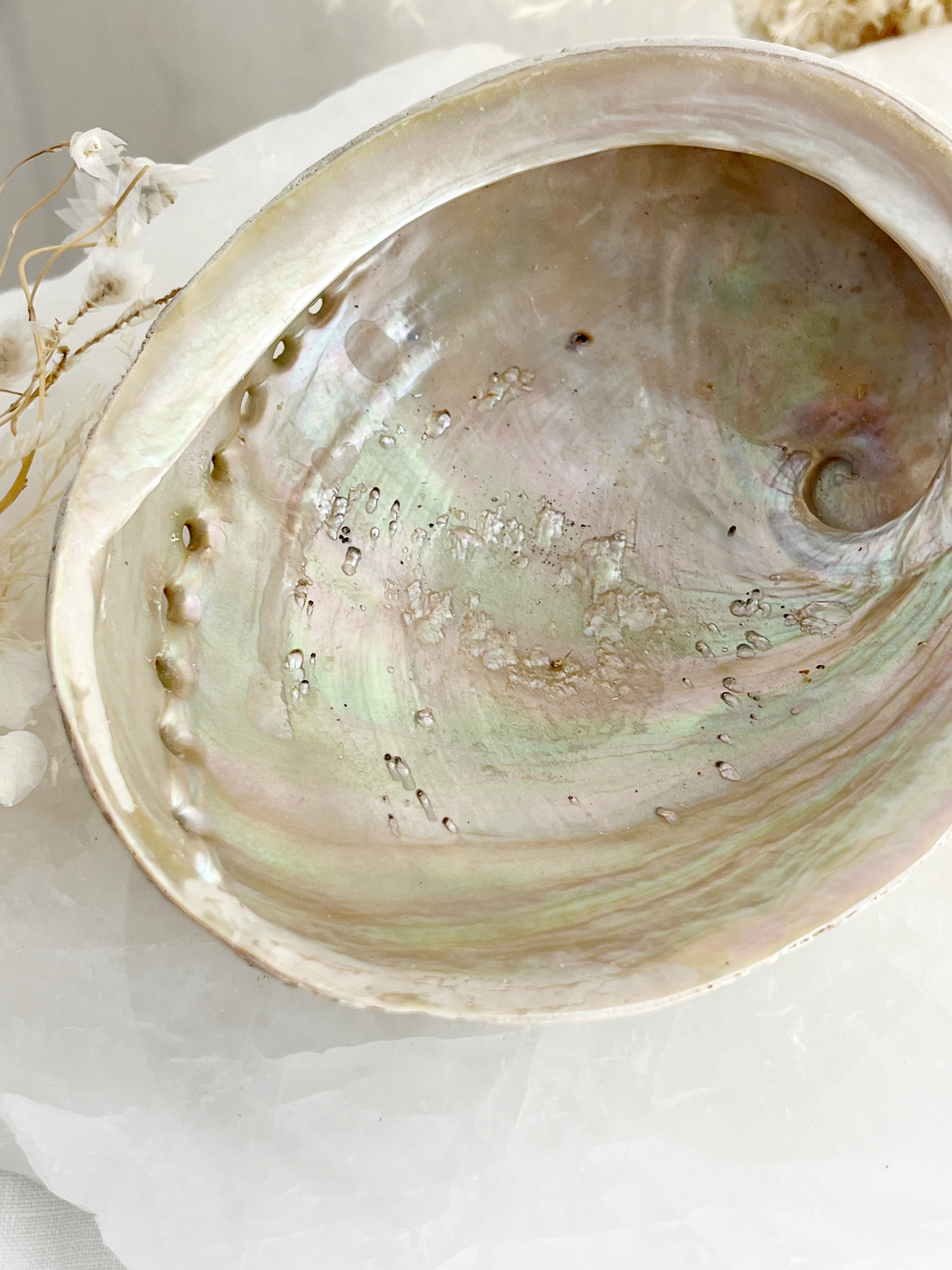 The pearlescent rainbow hues of the Abalone Shell make a stunning addition to your smudging practice, use as a dish to catch fallen ash or to store your smudging items for a beautifully styled alter.